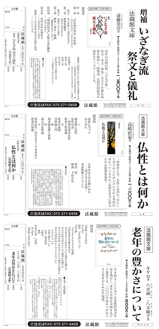 創刊ラインアップは、斎藤英喜「増補 いざなぎ流 祭文と儀礼」、高崎直道「仏性とは何か」、キケロ「老年の豊かさ